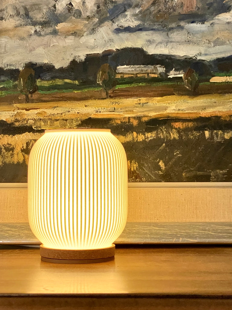 This beautifully crafted 3D-printed table lamp features a contemporary shape and minimal pleated texture.