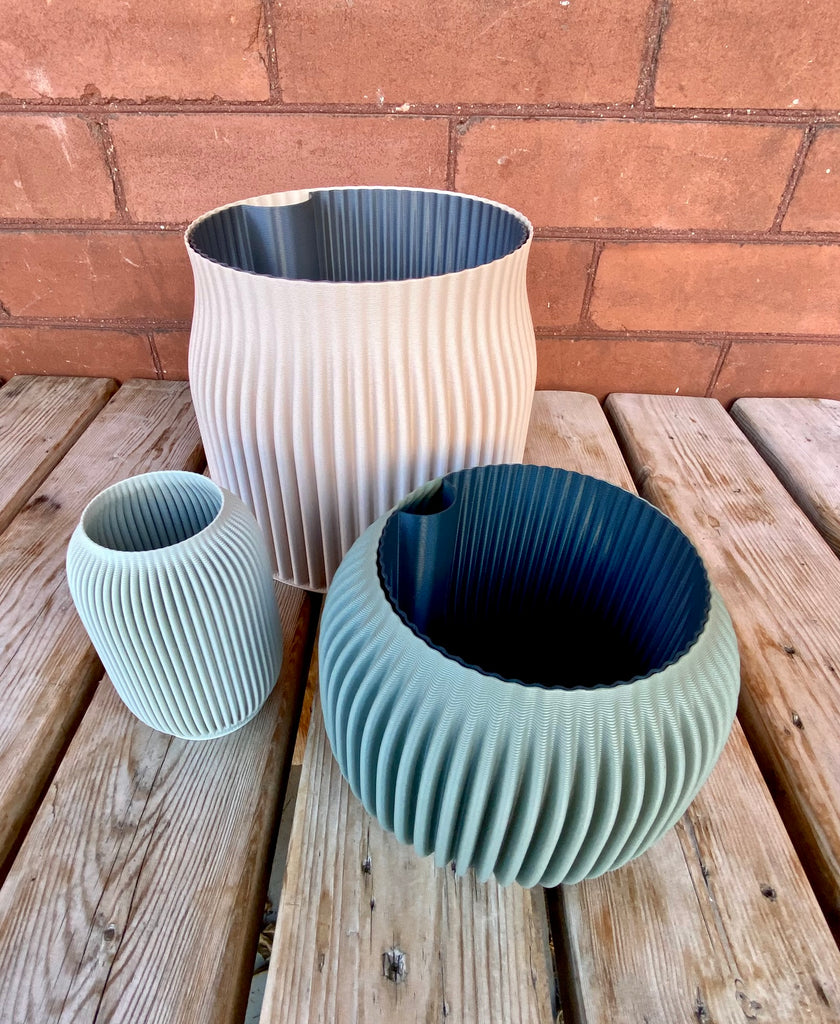 This beautifully crafted 3D printed plant pot is made in Ottawa and effortlessly blends a contemporary shape with a unique pleated texture. The planter includes a detailed outer pot with a perfectly fitted inner pot. Plants can be potted directly into the inner pot which features an innovative bottom-watering channel and a generous amount of drainage holes to keep your favourite plants healthy and happy. The outer pot is water-tight made from a durable bioplastic. The inner pot is made from recycled bioplastics.