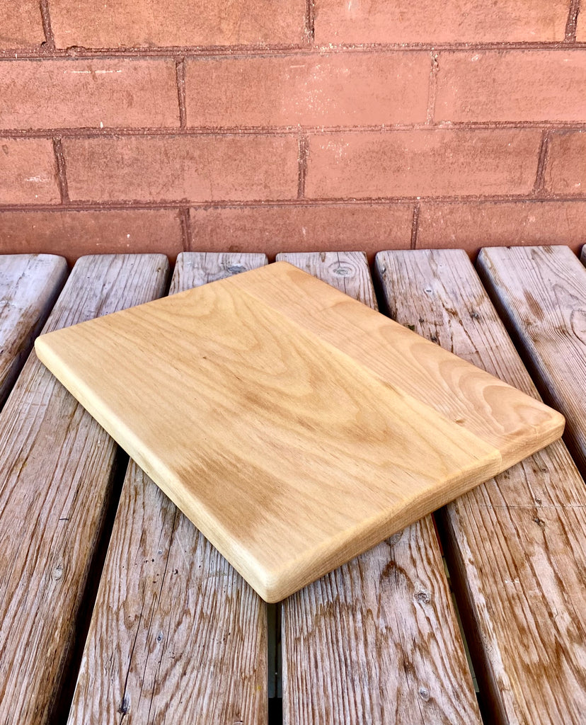 A simple, small everyday wood cutting board. These maple chopping boards are easy to store or stack. This size is perfect for a smaller kitchen or for cutting smaller amounts of food.