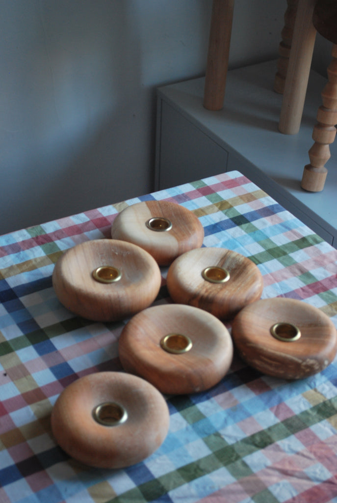 Hand turned holder to securely display your beeswax taper candles. Dress up for the holidays with evergreen and berries, or let the natural wood grain shine on its own year round.